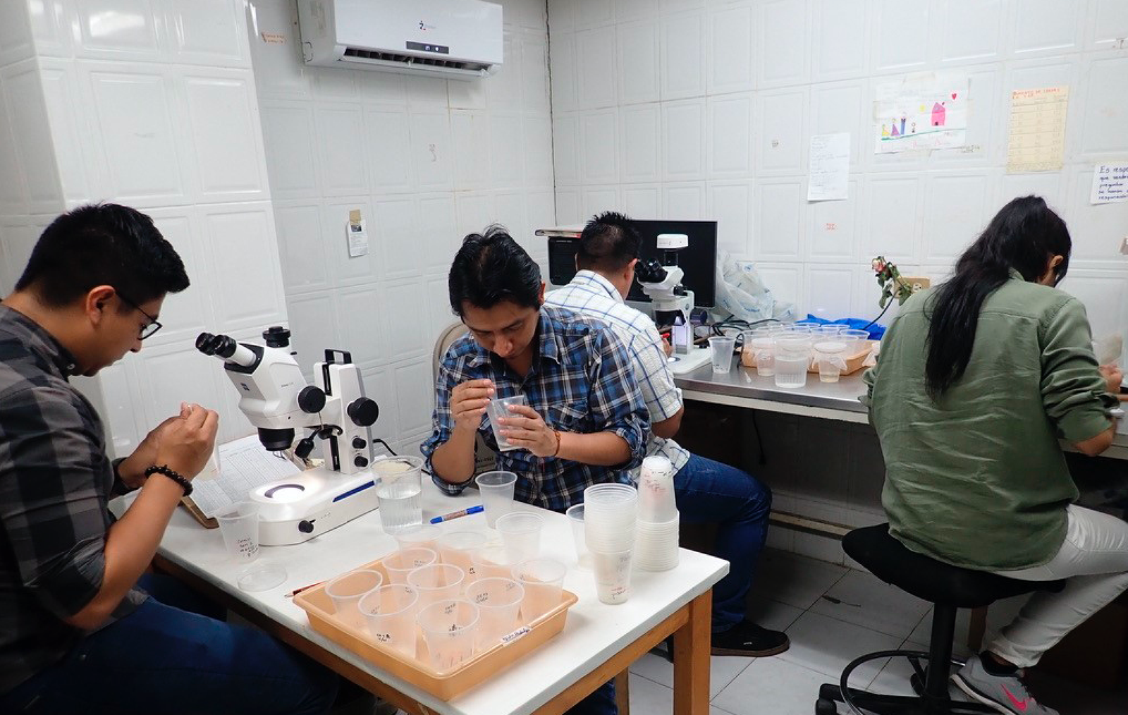 Personal del Centro de Investigación en Vectores CIREV de la Coordinación Zonal 9 del Instituto Nacional de Investigación en Salud Pública (INSPI-LIP), realizaron un entrenamiento en el Centro Regional de Investigación en Salud Pública (CRISP/ INSP) de la ciudad de Tapachula, Ch. México, la estancia científica fue financiada por el Organismo Internacional de Energía Atómica (OIEA) y se realizó desde el 14 de enero al 14 de febrero del presente año. Este curso de entrenamiento permitió al Ing. Carlos Yánez y al Sr. Fernando Cajas conocer el manejo de la cría masiva de Aedes aegypti y el monitoreo de las poblaciones silvestres, para su implementación en el uso de la Técnica del Insecto Estéril (TIE).